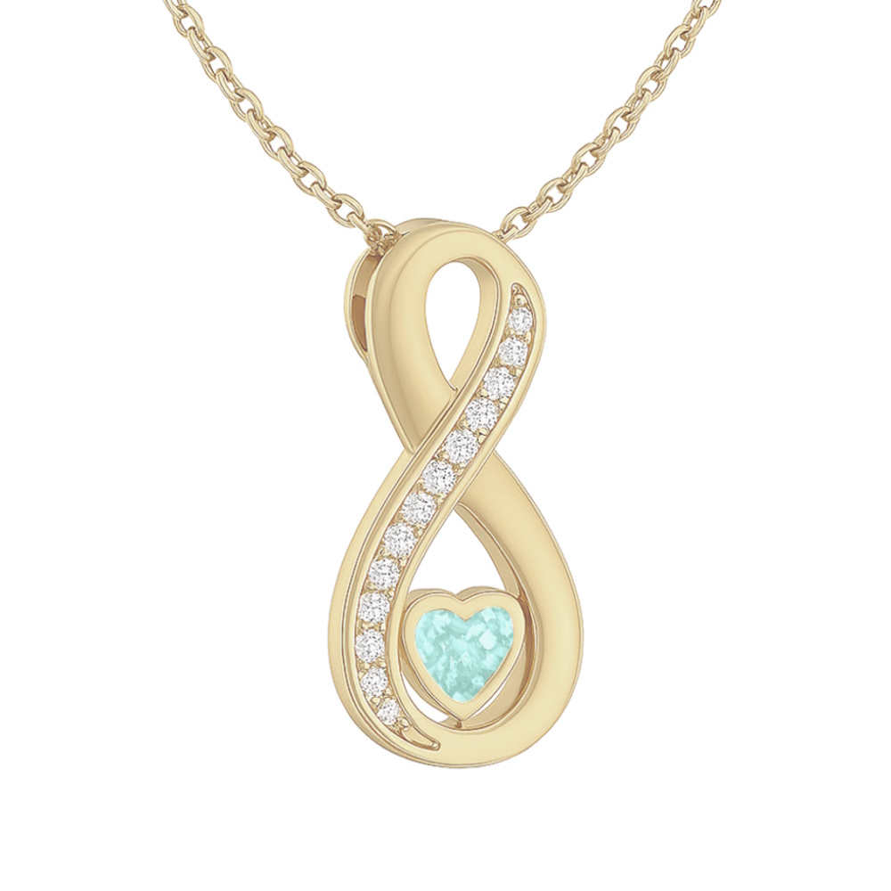 A graceful symbol of forever, this pendant cradles a quiet remembrance within its flowing form. The infinity loop speaks of love without end—an enduring bond held close, even in absence. A tender tribute to someone cherished, beautifully woven into the rhythm of your everyday. Choose from 20 beautiful colours. All of our LifeStone™ cremation ashes memorials are made with genuine crushed diamonds that are mixed in with your loved ones ashes.